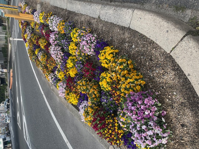 ウォーキングが日課の私。 32歳から続けているのでもう20年を越えました! いつも大通りの交差点で信号待ちをするのですが、そこの交差点に花壇があります。 その花壇は短期間で色々な種類のお花に植え変わります。 先日、春の花に植え変えられたのを見ると、色とりどりで、見ているこちらの心が和みました。 近所の方がボランティアでお世話しているのも愛情が湧く要因です。