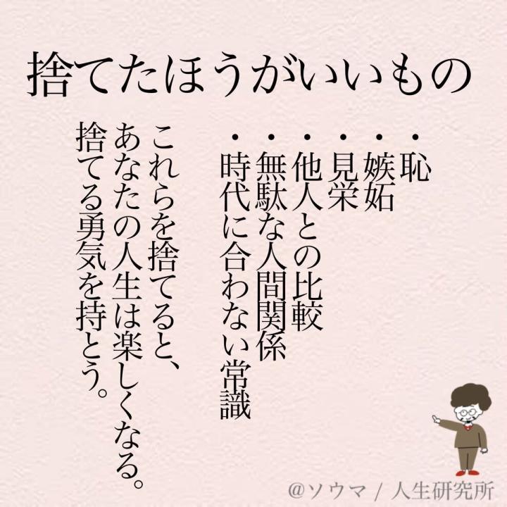 若い時は全然響かなかった事でも、年を取ってくると‘‘あぁ、なるほど~’’と思う事が多々あります。 中には「若い時から実践していたら…」と思う事も。 『見栄』とか『他人との比較』とかホント、早く捨てた人勝ちだと思う。 あと『異常に高いプライド』ね。 若い時のプライドなんて、大した事ないからww。
