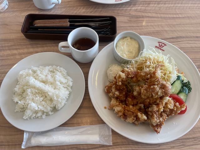 当社から車で2~3分の所に、天満屋ハピーズ中島店があります。 倉敷自動車教習所の隣です。 そのモールの中に「ステーキハウス ラジャ634 倉敷中島店」があります。 そこのランチは999円(税込)でご飯とスープお替り自由です。 この日私は「チキン南蛮ランチ」を頂きました。 注文から提供までそんなに時間が掛からないので、昼食に時間を掛けられない時には重宝します。