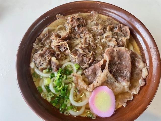 肉が絡んだ甘い出汁が美味しすぎる「肉うどん」。たまりません。