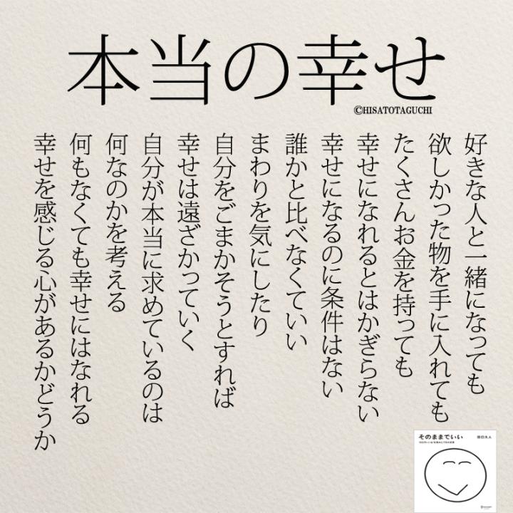 自分自身で‘‘幸せだ!’’と思っている人は誰にどう言われようと‘幸せ’で、そのまた逆もあります。