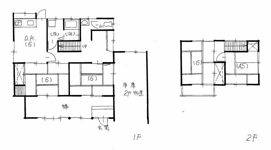 | 間取り詳細 | 1階:DK6帖 和室6帖×2部屋 2階:和室4.5帖 和室6帖 |