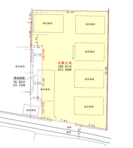 対象敷地の一部に倉庫がありますがそれは解体し、分筆してお渡しします。