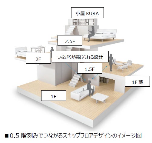 | 間取り詳細 | 1階:LDK 蔵 水廻り 1.5階:和室 書斎 2階:洋室×2部屋 蔵 2.5階:洋室2部屋 |