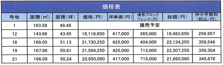 | 備考 | 12号地:境界ブロックフェンス費36.5万円・仲介手数料約29.9万円別途要。