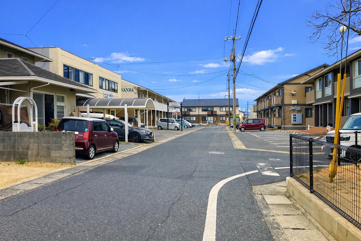 最寄りのコンビニまで徒歩9分、スーパーまで徒歩7分、ドラックストアまで徒歩6分、2号線まで車で2分。