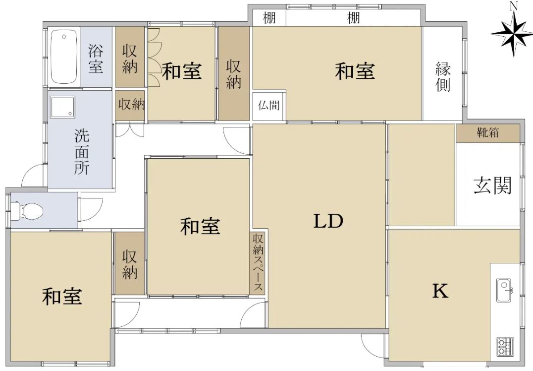 | 間取り詳細 | 1階:LDK 和室×4部屋 水廻り |