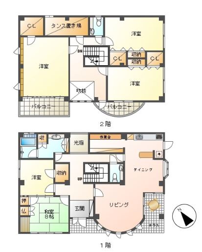 | 間取り詳細 | 1階:LDKと洋間・和室 2階:洋間3部屋 |