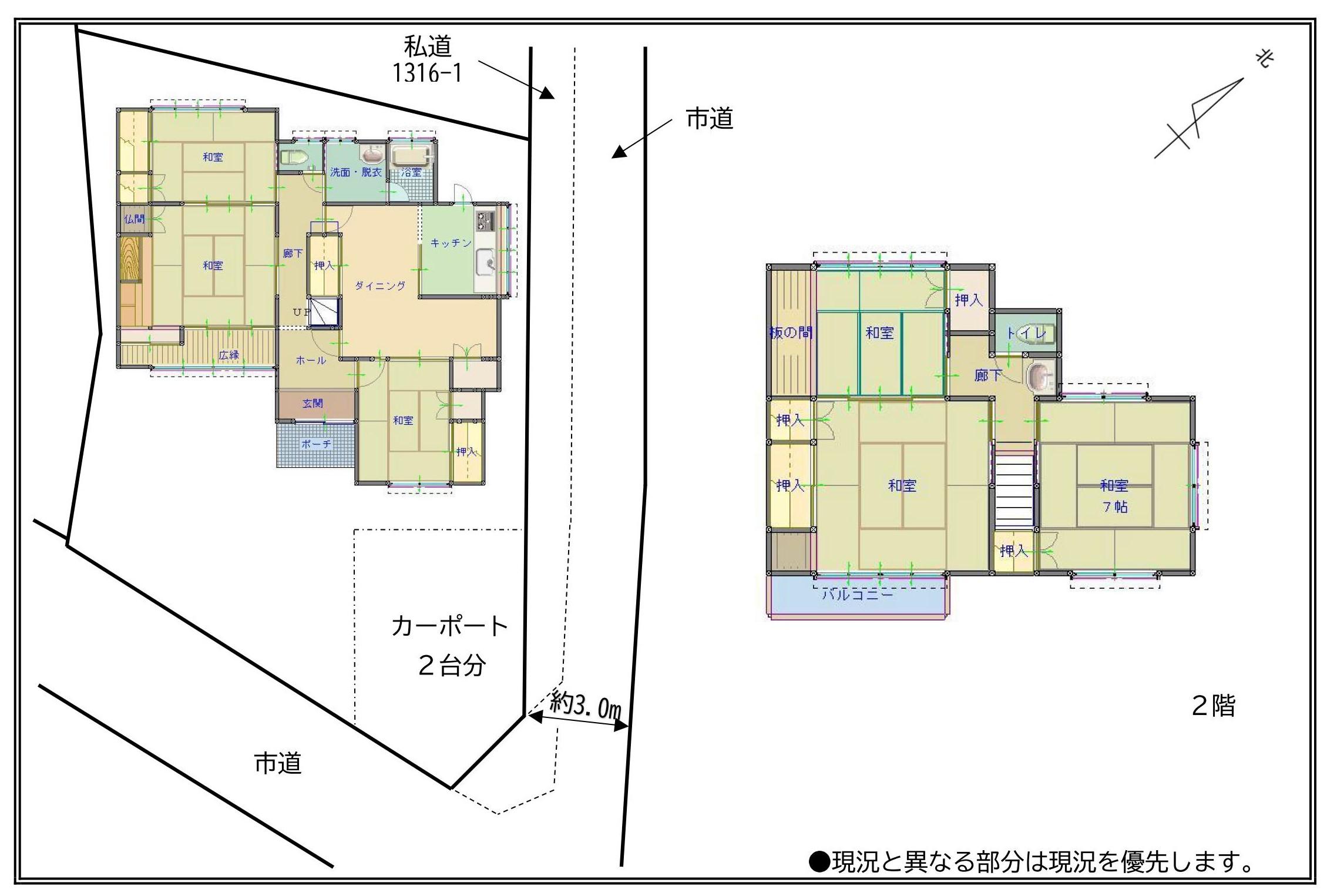 70坪・南道路の敷地に41坪の日本家屋。駐車場2台。