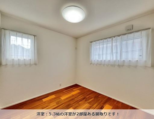| 間取り詳細 | 1階:LDK16帖 水廻り 2階:洋間5.3帖×2部屋 洋間8.1帖 サンルーム3.5帖 W.I.C.2帖 |