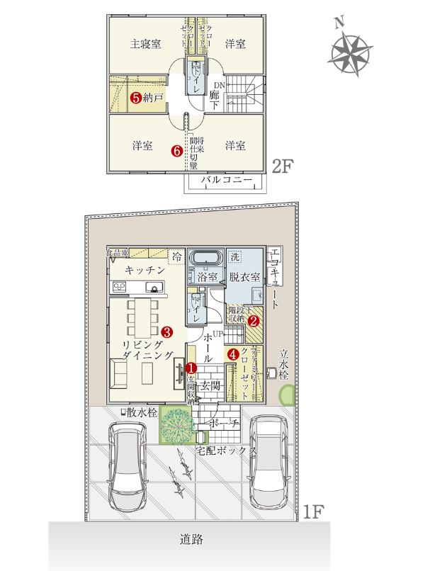 駐車場並列2台。