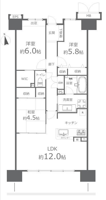| 間取り詳細 | LDK15.4帖 和室4.5帖 洋間5.8帖 洋間6帖 |