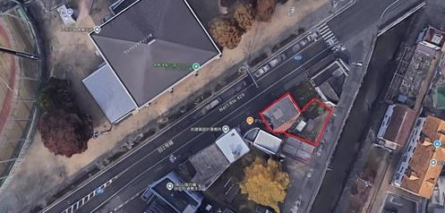 】倉敷運動公園前の旧2号線沿いの建物付土地。現状有姿渡し。