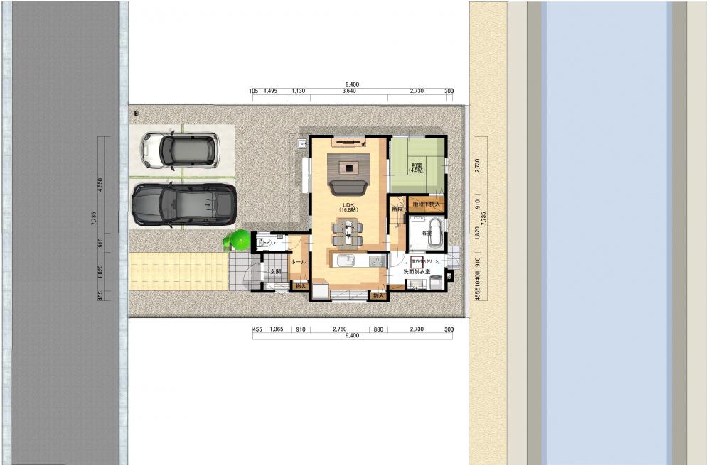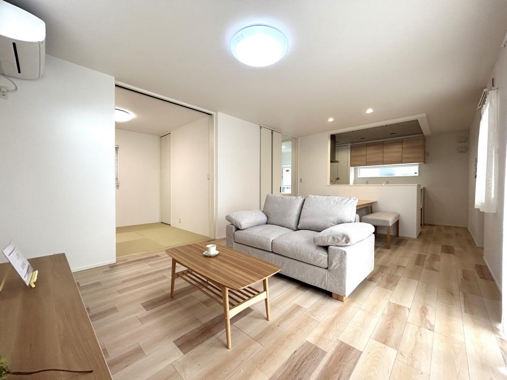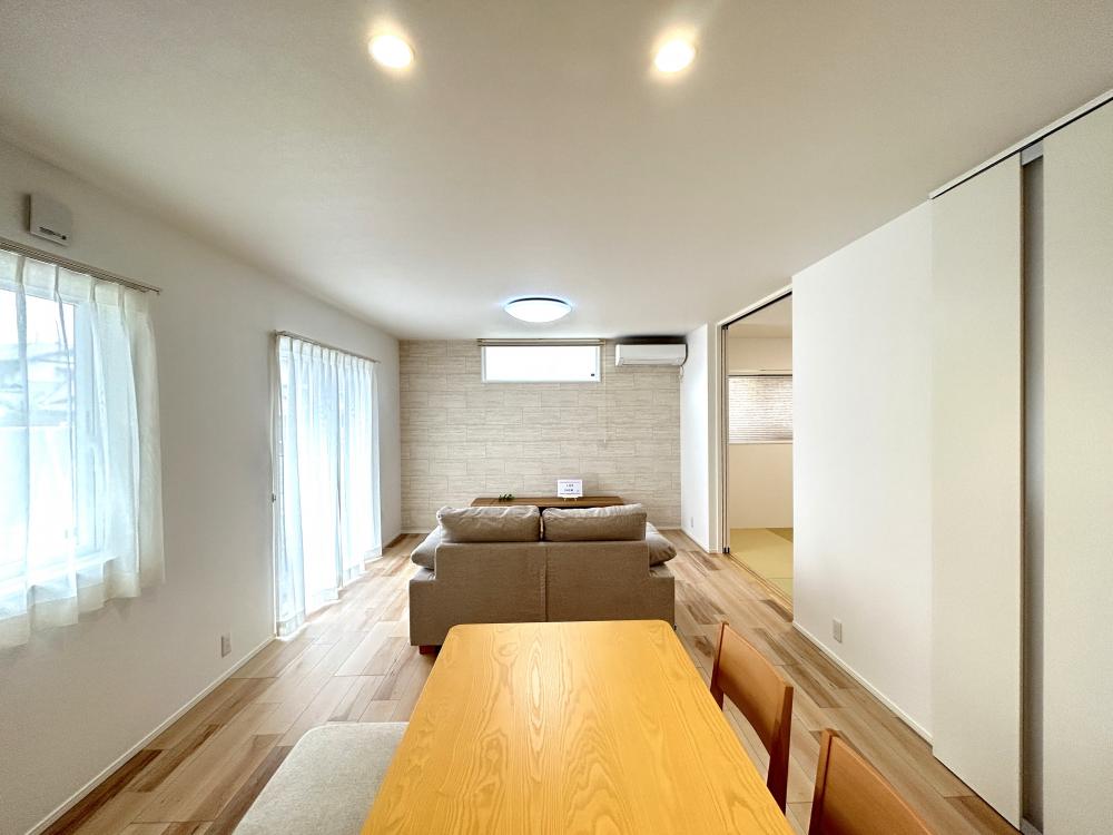 照明・レースカーテン・エアコン2台・家具・外構付、税込。