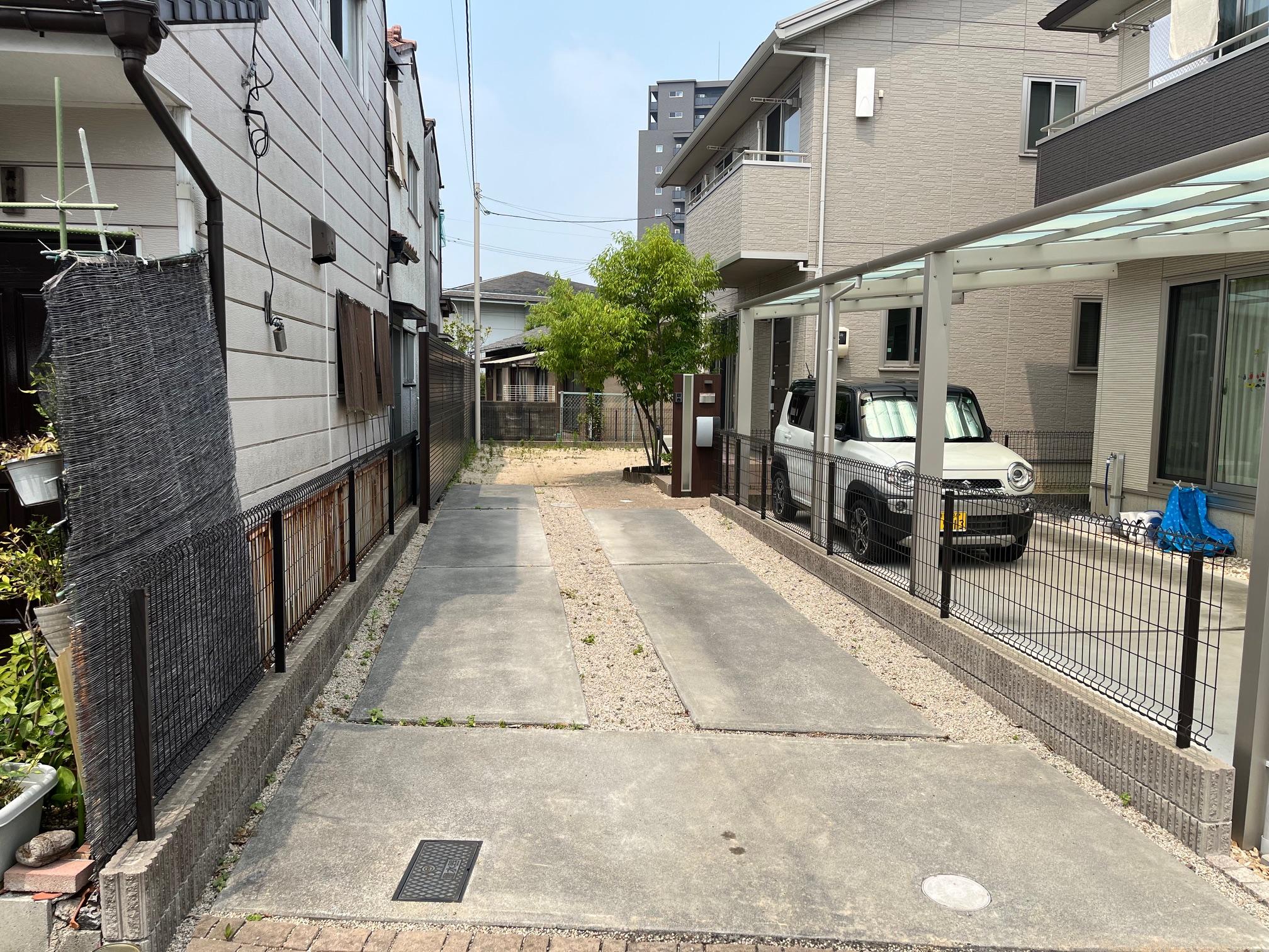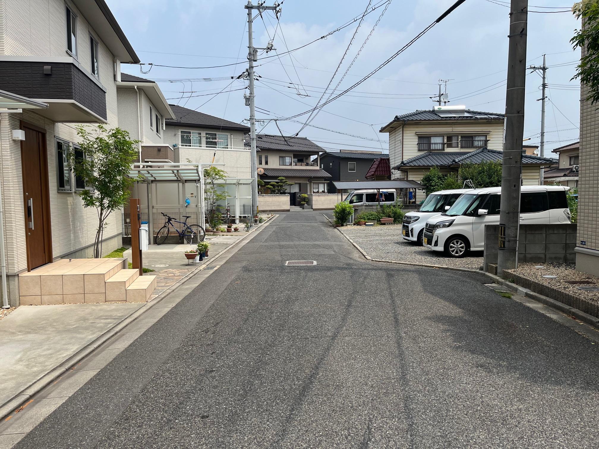前面道路は近所にお住まいの方しか通らない道なので安全です。 治安も住環境も良好。旗竿地なので敷地を上手に活用しています。