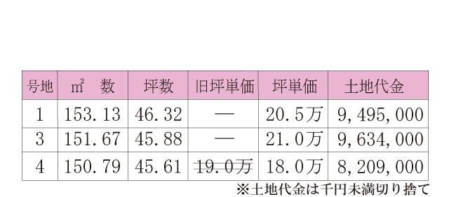 8/3現在、④号地の他に①③号地販売中。