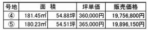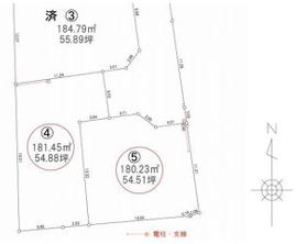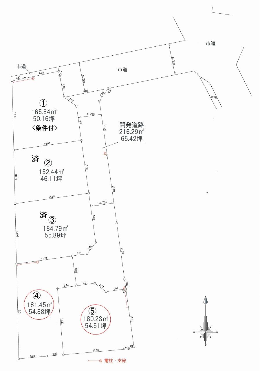 | 備考 | 開発団地:許可番号第706号。 上下水道負担金は販売価格に含む。 仲介手数料正規要。 5号地:197.24㎡(59.66坪) 21.179.300円 2区画一括買いも可能 |