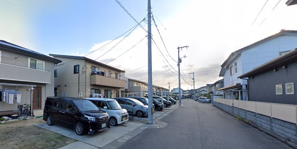 】中島小溝地区の南道路に面する住宅団地内。中島小or旭ヶ丘小の自由学区地域。